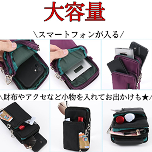 スマホ、財布、鍵、カードケースなどいつもの持ち物を収納して身軽にお出かけできます