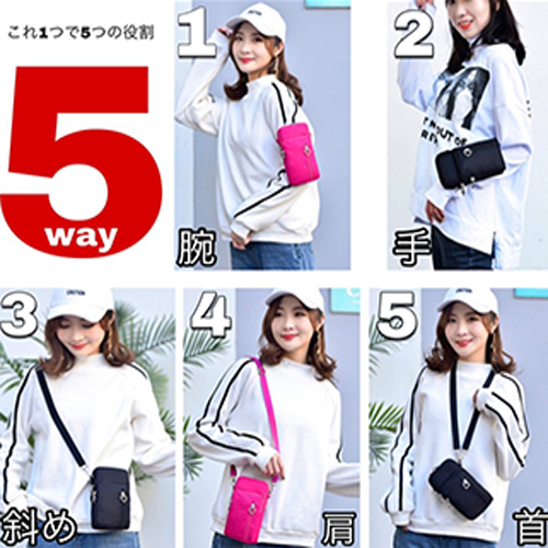 肩掛け以外にも腕を通してアームポーチとして使う事もできます