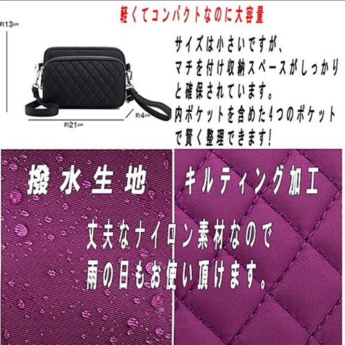 今流行りのミニバッグで軽量、防水仕様のナイロン素材なので多少雨にぬれても安心!