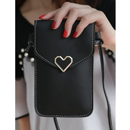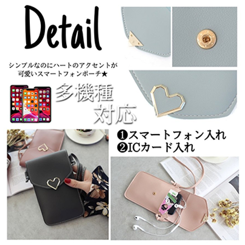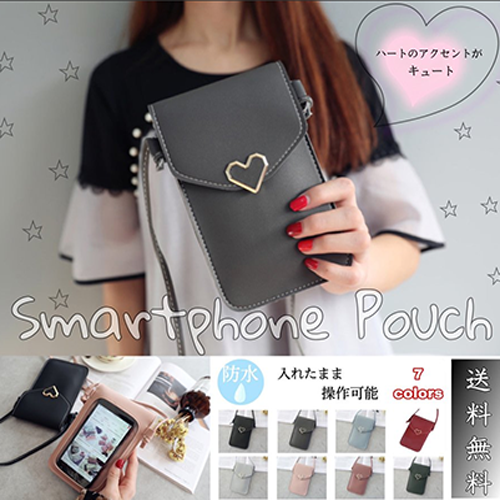 かわいいハートのショルダー付きスマートフォンポーチです。
