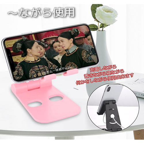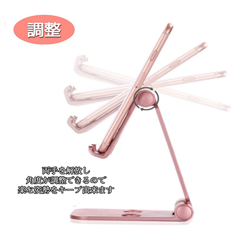 スタンドの角度は自由に調整可能です。シチュエーションによってお使いわけください。滑り止めもついているので安心です。