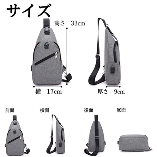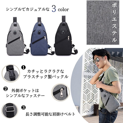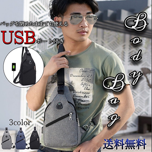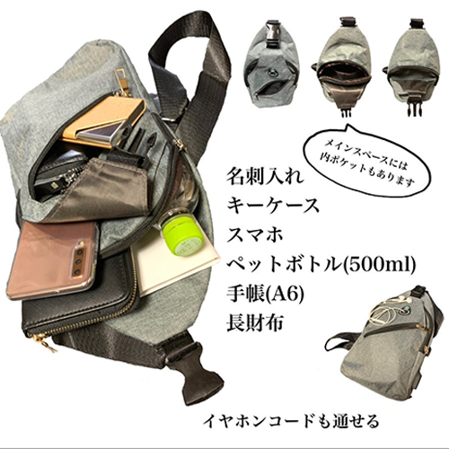 バッグを閉めたままでもUSBを使える、イヤホン穴もついてる便利なボディバッグです!ポータブル充電器と繋げばスマホの充電もできます!