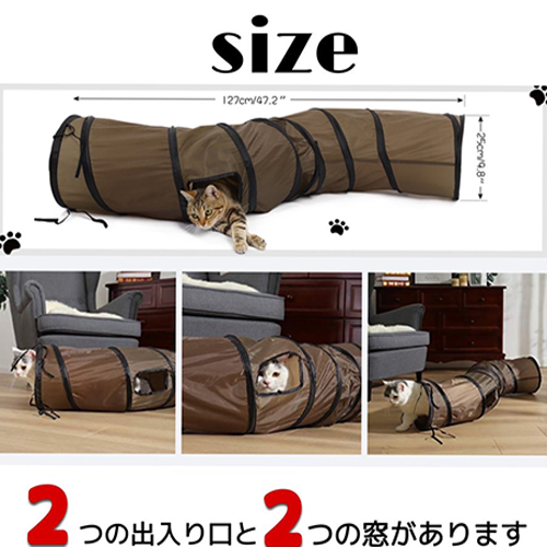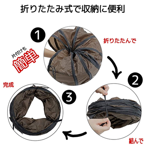 置くだけでS字型で猫のトンネルとなります。折り畳み簡単でかさばりません。