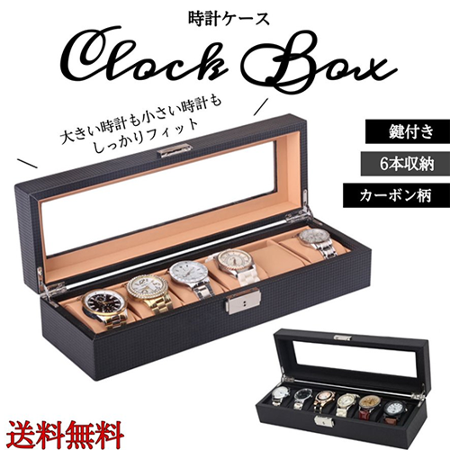 時計ケース 6本 コレクションケース 収納ケース おしゃれ  高級 時計収納ケース 保管ケース ディスプレイ  鍵付き カーボン 腕時計ケース