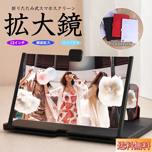 スマホ 拡大鏡 12インチ 10インチ 3倍 4倍 スタンド スクリーンルーペ 画面拡大 拡大レンズ 映画鑑賞 iPhone android タブレッド