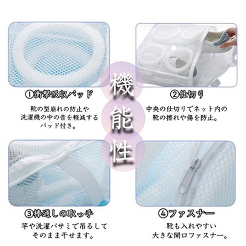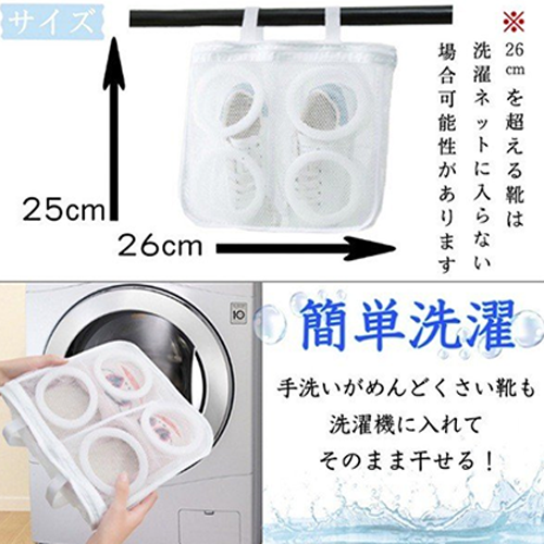 汚れた靴をネットに入れるだけ洗えます!洗濯したらそのまま干せる仕様で簡単で誰でもご使用いただけます。2個セットなので予備があって安心!