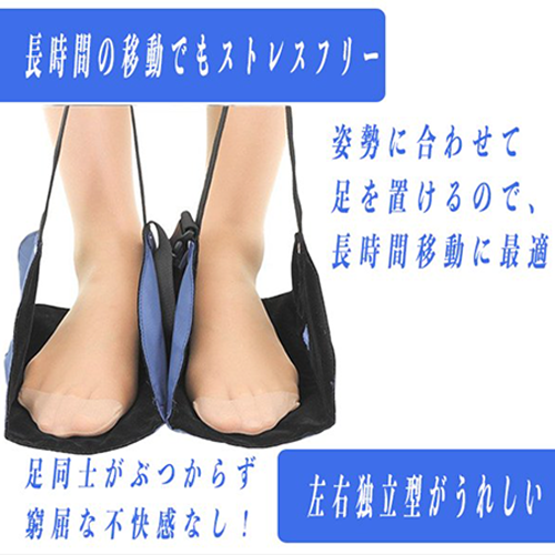 旅行や出張時などの移動時に大活躍してくれるアイテム、長距離の移動のお供にかかせないフットレストのセパレートタイプです。飛行機、バス、新幹線でご利用いただけます。飛行機や新幹線の座席テーブルに引掛けるだけで取付簡単。ストレスフリーな旅にどうぞ。