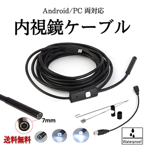 マイクロスコープ USB  スマホ 内視鏡 防水 接続 LED ライト スマートフォン タブレット PC 1m 配管 整備 撮影 アタッチメント付